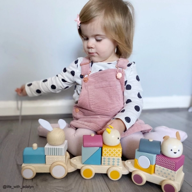 Izdelano iz 100% FSC lesa iz odgovorno upravljanih gozdov z uporabo netoksičnih barv. Kakovostna izdelava zagotavlja dolgo življenjsko dobo in varno igro. Vlak vključuje lokomotivo, 2 vagončka in 3 ljubke živalske figurice.