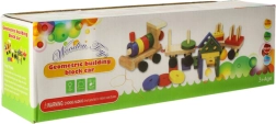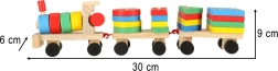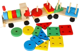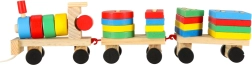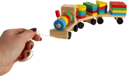 Ta kakovosten leseni vlak združuje zabavo in učenje v enem. Z barvnimi kockami in zlaganjem na zatiče si otroci razvijajo fino motoriko, koordinacijo oko–roka in kreativnost. Igrača hkrati pomaga pri prepoznavanju oblik in barv ter spodbuja potrpežljivost in logično mišljenje.