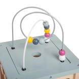 Odkrijte vsestransko motorično kocko iz kakovostnega 100% lesa FSC, ki bo otroke zabavala dolge ure. Na vsaki strani čaka druga dejavnost – vstavljanka, kroglična steza, zobniki in druge. Kombinacija naravnega lesa in nežnih pastelnih barv je idealna za deklice in dečke. Igrača podpira razvoj motorike, komunikacije in prepoznavanja števil ter je varna za otroke zahvaljujoč okolju prijaznim materialom s certifikatom FSC.