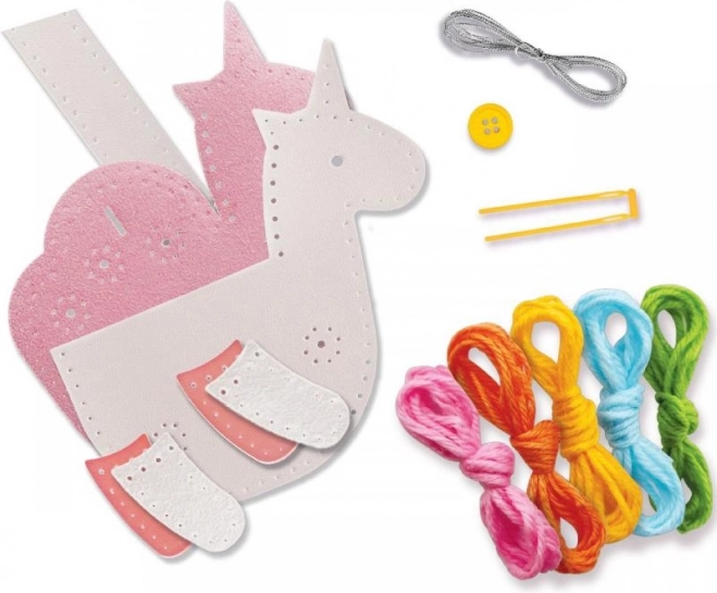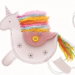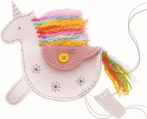 S tem ustvarjalnim kompletom si otroci preprosto sešijejo lastno denarnico samoroga iz trpežnega tekstilnega materiala, ki spominja na umetno usnje. Deli so vnaprej preluknjani za lažje predevanje niti, zato si otroci varno osvojijo osnovne tehnike šivanja in na koncu dobijo praktičen dodatek, v katerega shranijo drobnosti.