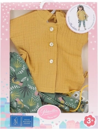 Privoščite svoji punčki izrazit outfit, ki izstopa z barvami in dovršeno izdelavo. Set Charlotte združuje okrove tone s tropskimi motivi za igriv in sodoben videz. Vse je izdelano iz prijetnih tkanin, ki se zlahka oblačijo in dobro držijo obliko.