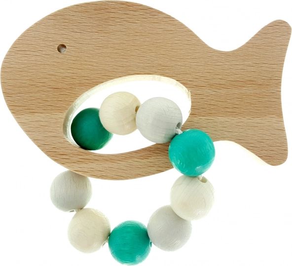 Ropotuljica v obliki ribice v turkizni barvi ponuja igriv način razvoja motoričnih spretnosti vašega otroka. Izdelana iz etično pridobljenega lesa, ki izvira iz ekološko trajnostnih gozdov, je ta izdelek izjemno varen in trpežen.