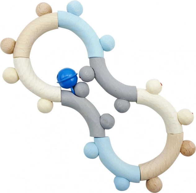 Hess Modra Motorična Ropotuljica je popolna igrača za malčke, ki na igriv način uri fino motoriko. Zaradi visokokakovostnega lesa in okolju prijaznih barv je ropotuljica varna za otroke. Za dolgotrajno uporabo priporočamo čiščenje le z vlažno krpo in izogibanje stiku s prekomerno količino vode.