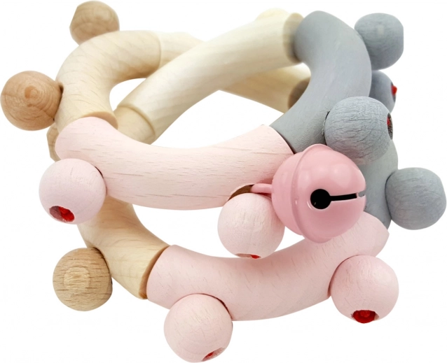 Stilska lesena ropotuljica HESS v nežnih pastelnih barvah podpira razvoj otroške motorike in čutov od rojstva dalje. Etnično je izdelana iz kakovostnega lesa, z uporabo okolju prijaznih in obstojnih barv, je prijetna za držanje in varno pritegne z nežnim zvokom ter teksturo. Popolna izbira za starše, ki iščejo naravno, trpežno in lepo igračo za dojenčka.