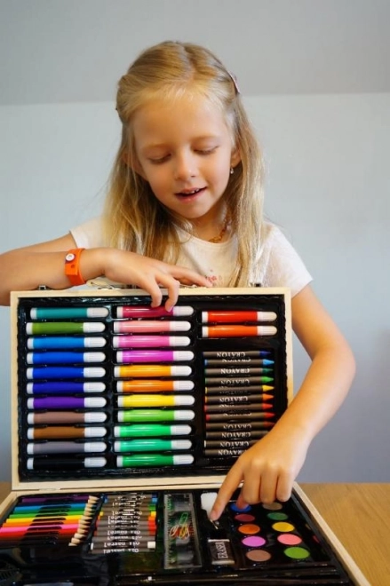Velik lesen kreativni kovček – komplet 91 kosov za slikanje in risanje