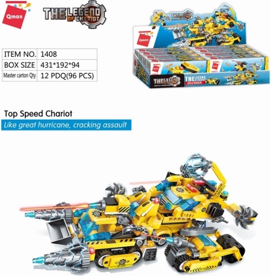 - 8 mini kompletov: Tovornjak Spanker, Žerjav Hercules, Valjar Thunder, Bager Talon, Helikopter Dragon, Buldožer Blade, Robot Ninja, Kopalni stroj Storm