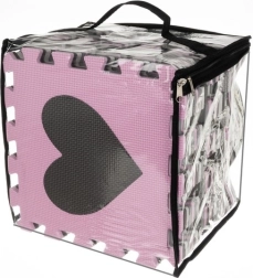 Podlogo lahko sestavite na ravno (pribl. 140 × 140 cm) ali ustvarite ograjo s pomočjo stranskih letvic in kotnikov. Material EVA je vodoodporen in enostaven za čiščenje – dovolj je obris z vlažno krpo. Komplet je dobavljen v praktičnem prenosnem etuiju, zato ga zlahka vzamete s seboj na obisk ali pospravite, ko ni v uporabi.