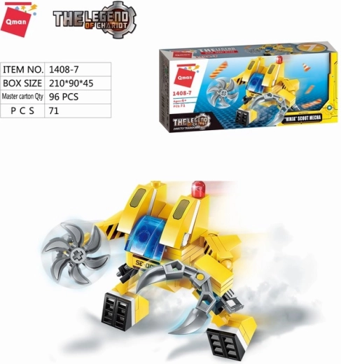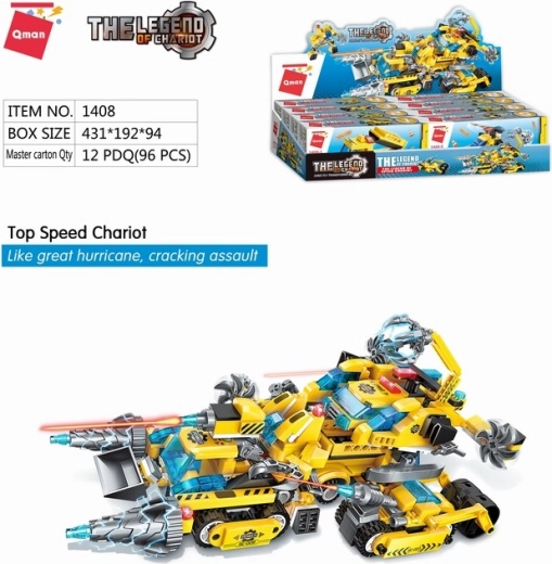 Odkrijte ustvarjalni svet serije Qman The Legend of Chariot. Vsak samostojni mini komplet predstavlja drugačno vrsto gradbene mehanizacije – od prekucnika in žerjava do vrtalnega ali goseničnega stroja. Ko zberete celotno serijo, lahko sestavite velik, celovit model večnamenskega stroja, ki bo igro in gradnjo dvignil na novo raven.