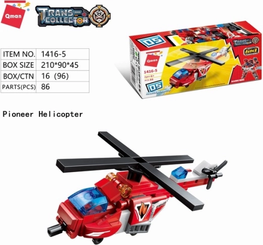 - 6 modelov v 1 – vozila, helikopter in možnost sestaviti velikega meha.