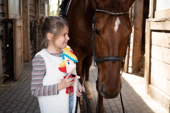 Z dopolnili v mavričnih barvah in prijaznim nasmehom otrokom podarja občutek radosti in varnosti.