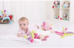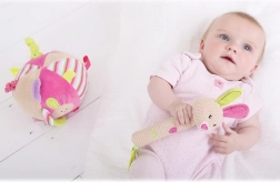 Ta pisana tekstilna žoga prinaša v otroški svet veselje in odkrivanje. Ustvarjena je z namenom podpirati čutni in motorični razvoj dojenčkov. Otroke bodo očarale različne teksture in barve, ki jih žoga ponuja.