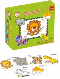 Vstavljanka Živali in vodne barve je idealna kombinacija za razvoj domišljije in fine motorike. Otroci se lahko veselijo šestih različnih slik – zajec, slon, žirafa, lev, zebra in tiger.