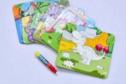 Ta inovativen izdelek združuje dva čudovita svetova: sestavljanko in vodno slikanje. Sestavljanje je enostavno zahvaljujoč trdnim kartonastim ploščam z izrezanimi obrisi, medtem ko na drugi strani otroci odkrivajo svojo ustvarjalnost pri vodnem slikanju. Bele plasti izginjajo in razkrijejo žive barve, ki bodo pritegnile vsakega malega umetnika.