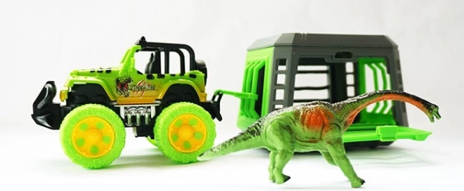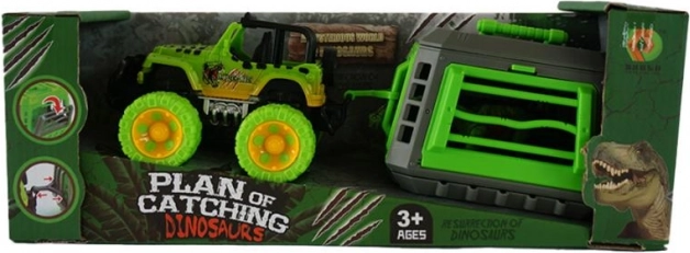 Džip s prikolico in dinozavrom je izdelan iz plastike. Dinozaver je odstranljiv, prikolica pa se lahko odklopi.