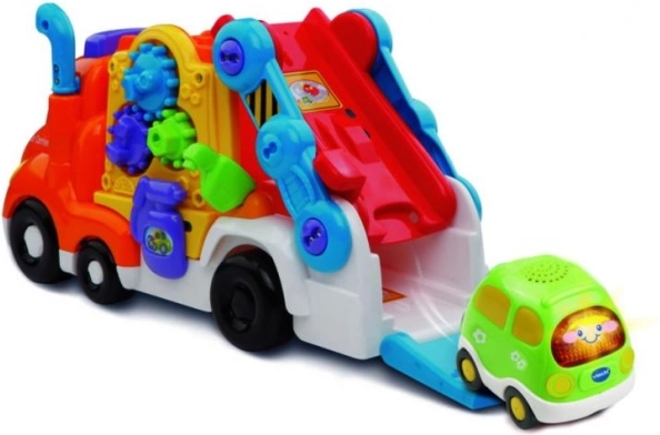 Servisni avto Tut Tut znamke VTech je idealen spremljevalec za otroke, ki želijo uživati v zabavi in se hkrati učiti. Igrača lahko prevaža do štiri majhne avtomobilčke Tut Tut in je polna interaktivnih elementov, ki razvijajo motorične spretnosti in domišljijo. Zahvaljujoč kontaktnim točkam »Smart point« predvaja tri pesmice in zna vrsto zabavnih fraz, kar pomaga razvijati besedni zaklad otrok.