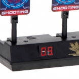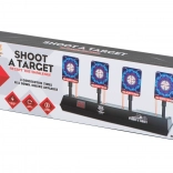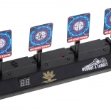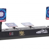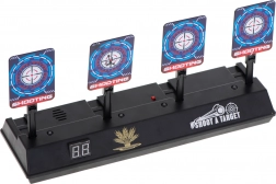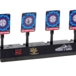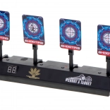 LED zaslon jasno šteje točke, po zadetku vseh štirih ciljev pa se tarče same dvignejo – igra se tekoče nadaljuje brez ročnega nastavljanja.