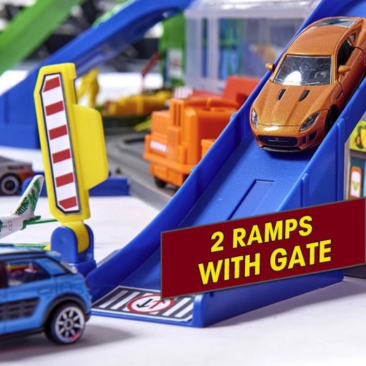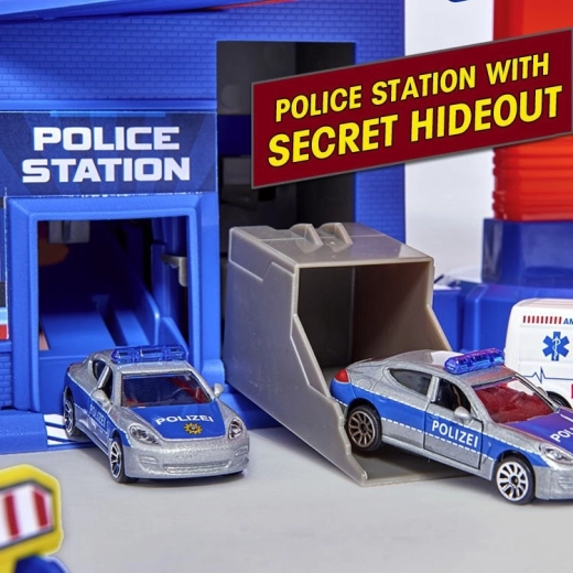 Del seta so tematske cone, kot so policijska postaja s skritim skrivališčem, gasilska postaja, bencinska črpalka in avtopralnica. Zaradi obsežnega parkirišča za do 35 avtomobilov in premišljene razporeditve je set idealen za sorojence in prijatelje. Odlično darilo, ki spodbuja fino motoriko, domišljijo in sodelovalno igro.