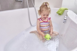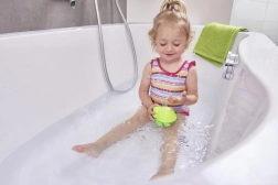 Zaradi kompaktne dolžine 11 cm jo zlahka držijo tudi drobne otroške ročice. Trpežen in gladek plast je enostaven za čiščenje ter zasnovan za vsakodnevno uporabo v kadi ali otroškem bazenčku.