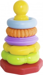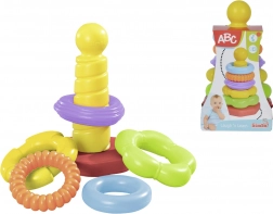 Piramida s pisanimi obročki je idealna pripomoček za razvoj motorike in sposobnosti kombiniranja pri otrocih. Vsebuje pet raznobarvnih obročkov različnih oblik.