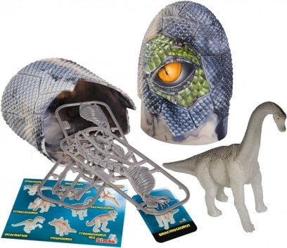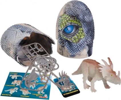 Odkrijte presenečenje v vsakem jajcu! V notranjosti najdete 10 cm figurico dinozavra, sestavljanko skeleta in zbirateljsko kartico. Dinozaver sveti v temi, izbirate lahko med 8 različnimi vrstami – odlično darilo za male paleontologe in zbiratelje.