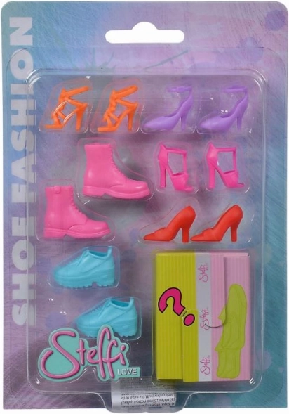 Ta komplet čeveljčkov za punčko Steffi razširi možnosti oblačenja in spodbuja domišljijo pri igri. Različni slogi in barve omogočajo usklajevanje obutve z vsako modno zamislijo ter ustvarjanje izvirnih kombinacij.