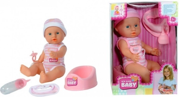 Paket vsebuje vse potrebno za igro nege novorojenca: stekleničko, dudo, kahlico in slinček. Realističen videz in prijeten material zagotavljata, da bo punčka postala nepogrešljiv del igre vaše hčerke.