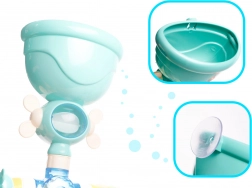 Namestitev je vprašanje trenutka: močni priseski držijo tako na kadi kot na ploščicah, zato igrača ostane stabilna. Modri ventili omogočajo otrokom uravnavati smer in pretok vode, s čimer razvijajo spretnost, logično razmišljanje in koordinacijo oko–roka.