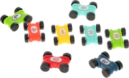 Set vsebuje osem barvitih avtomobilčkov s številkami – idealno za skupne dirke, prve korake v štetju ter razpoznavanje barv in oblik.