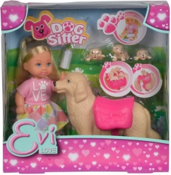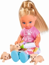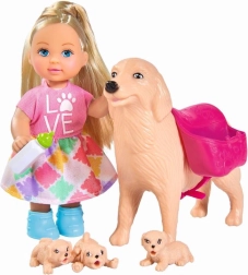 S tem očarljivim kompletom bodo otroci uživali ure zabave pri negi živalic. Punčka Evi ima stajliš obleko in skupaj s pasjo mamico ter tremi kužki ustvarja popoln svet za domiselne zgodbe. Priloženi so tudi dodatki, ki spodbujajo igro vlog in učenje odgovornosti skozi igro.