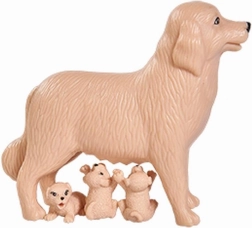 Otroci lahko hranijo, nosijo in polagajo tri kužke k pasji mamici – idealno za igro skrbi in razvoj empatije.