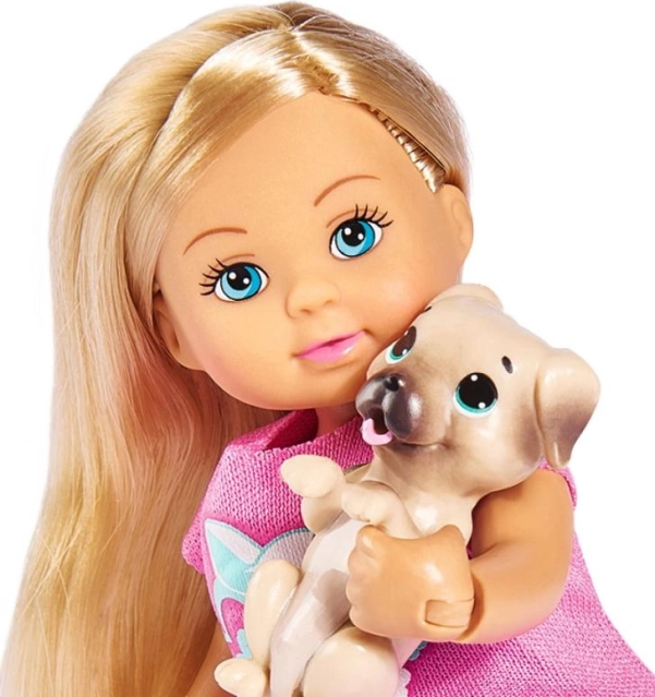 Odkrijte svet zabavnih dogodivščin s punčko Evi, ki se odpravlja na vožnjo s svojim kužkom. Zahvaljujoč praktični čeladi in pisano barvitemu kolesu je pripravljena na varno in veselo igro. Kompaktna višina 12 cm se prilega otroškim rokam in vabi k ustvarjalni igri doma in na poti.