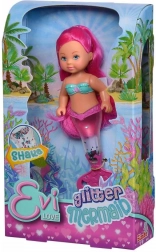 Odkrijte čarobni podvodni svet s punčko Evi Love v podobi morske vile. Njen rep je napolnjen z bleščicami, ki se ob potresanju čudovito zavrtinčijo in ustvarijo sijoč učinek. Zaradi kompaktne višine 14 cm jo zlahka držijo tudi mlajši otroci, punčka pa je odlična za na pot.