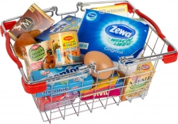 Ta ljubka, a čvrsta kovinska nakupovalna košarica SMALL FOOT je odličen dodatek k vsem otroškim trgovinam in kuhinjam. Do vrha je napolnjena s plastičnimi maketami znanih živil in izdelkov za vsakdanjo rabo, zato lahko otroci realistično vadijo nakupovanje, razvrščanje in postrežbo. Izbor priloženih maket je spremenljiv, zato lahko vsako pakiranje ponudi drugo presenečenje.