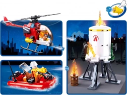 S tem kompletom lahko ustvarjate dinamične prizore gasilskih akcij. Izdelan je iz kakovostne plastike ABS, ki je trpežna in varna. Set vsebuje 490 koščkov in 5 edinstveno oblikovanih figur z vrtljivimi in nihajnimi deli telesa.