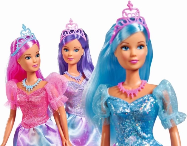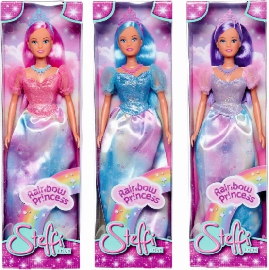 Punčka Steffi kot mavrična princesa z barvnimi lasmi, 3 vrste. Velikost punčke 29 cm.