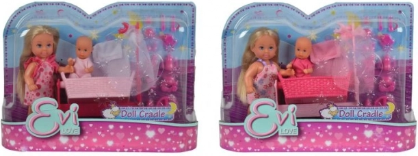 Lutka Evi Love v ljubkem setu z dojenčkom in zibelko je idealna za majhne negovalce. S to igračo lahko otroci razvijajo svoje ustvarjalne sposobnosti in domišljijo. Obe lutki, oblečeni v čudovita rožnata oblačila, prinašata ure zabave.