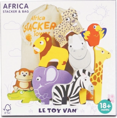 Ta igriva set prinaša v otroško sobo košček divje narave. Otroci lahko zgradijo najvišji stolp iz živalic – žirafe, leva, slona, zebre, opice, nosoroga, geparda, krokodila in papige – ter pri tem urijo ravnotežje, potrpežljivost in domišljijo. Igra uravnoteženja razvija logično razmišljanje ter spodbuja zaznavanje oblik in barv.