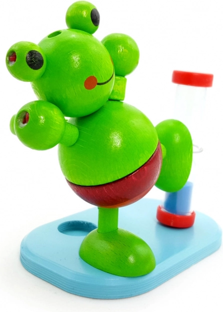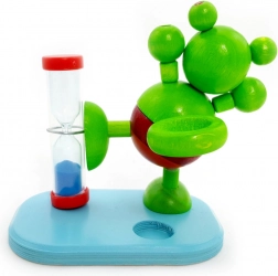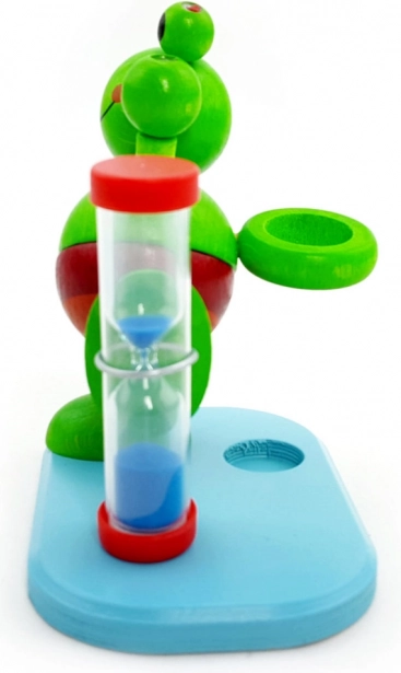 Ljubka peščena ura v obliki žabe spremeni ščetkanje zob v zabaven ritual. Dvominutni interval pomaga otrokom upoštevati priporočeni čas ščetkanja, medtem ko praktično držalo za ščetko poskrbi, da je vse na svojem mestu in pri roki.