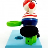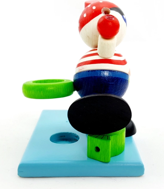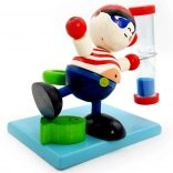 Na zabaven način motivirajte otroke k rednemu ščetkanju zob. Leseni pirat s peščeno uro z modrim peskom zanesljivo odmeri priporočeni 2 minuti, medtem ko vgrajeno držalo za zobno ščetko pomaga ohranjati red v kopalnici.