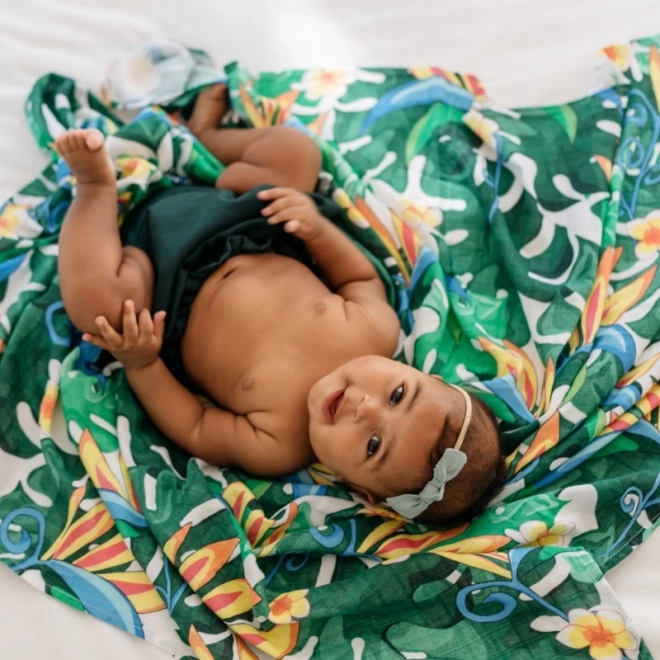 Lahka in zračna bambusovo-bombažna muslin plenica Tommy Lise z vzorcem Lush Garden je nežna do otroške kože, zračna, hladilna in prijetna na dotik. Zaradi velike dimenzije 120 × 120 cm jo lahko uporabite kot odejico, povijalno pleničko ali zaščito pri dojenju.