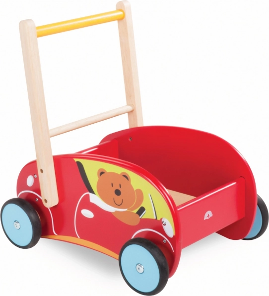 Lesena otroška hojica v obliki rdečega avtomobila