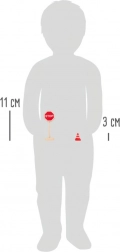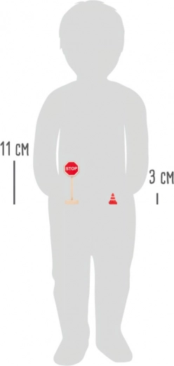 Znaki so približno 11 cm visoki, stožci okoli 3,2 cm – velikost, idealna za prijemanje, sestavljanje in ustvarjanje lastnega prometnega sveta.