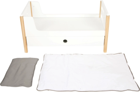 Predalčki pod posteljami poskrbijo za red med dodatki, medtem ko spolno nevtralna posteljnina in prevelike odeje ustrezajo punčkam do 46 cm.