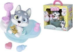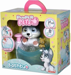 Kužek Husky Pamper Petz v kadi - popoln spremljevalec za zabavno kopanje! Prikupen kužek z funkcijo pitja in lulanja, ki otroke navduši s svojo interaktivnostjo in igrivo funkcionalnostjo.