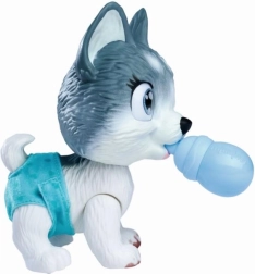 Kužek Husky ima interaktivno funkcijo pitja in lulanja, kar otroke nauči skrbi za domače ljubljenčke in doda igri dodatno dimenzijo.