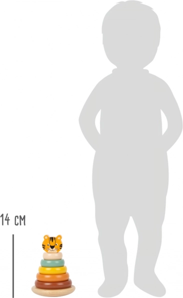 Ta impresivni nasadni stolp s tigrovim motivom je ne le lepa igrača, ampak tudi odlično orodje za razvoj otrokovih spretnosti. Sestavljen je iz 7 delov, vključno z osnovo in šestimi barvnimi obročki, ki jih je mogoče nasaditi na palico z zaključno tigrovo glavo. Na ta način otroci trenirajo koordinacijo oko-roka in razumevanje oblik.