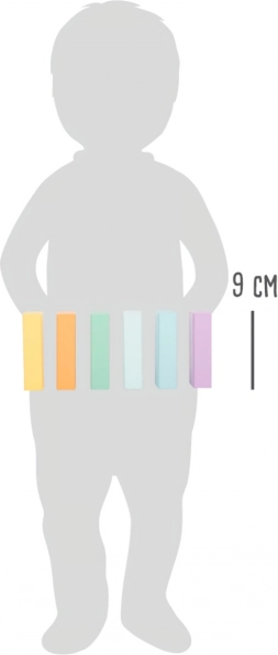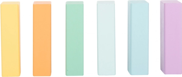 Elegantna barvna paleta se lepo poda otroški sobi, kocke pa postanejo tudi okusna dekoracija. Set je del produktne linije Pastel in izstopa po visokem deležu naravnega lesa v kombinaciji z nežnimi barvami, ki spodbujajo mirno igro brez preobremenitve čutov.