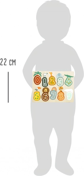 Ta izobraževalna lesena sestavljanka v pastelnih barvah združuje veselje do igre z učenjem. Otroci zlahka primejo in vstavijo 10 izbočenih lesenih številk v prave odprtine ter tako razvijajo fino motoriko, koordinacijo oko–roka in logično razmišljanje. Barvite ilustracije safari živali spodbujajo domišljijo in ohranjajo pozornost.