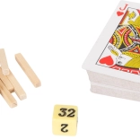 • Kaj najdete v notranjosti: halma, barikada, šah, dama, Človek, ne jezi se, mikado, igre s kockami in komplet kart