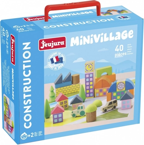 Odkrijte čar klasične lesene sestavljanke JEUJURA, ki razvija domišljijo in fino motoriko otrok. Set vsebuje 40 skrbno izdelanih delcev in podlogo, s katerimi otroci zlahka zgradijo slikovito vasico. Izdelano v Franciji iz masivnega bukovega in borovega lesa, obdelanega z varnimi barvami na vodni osnovi. Praktična embalaža v kartonskem kovčku s tiskom z rastlinskimi črnili naredi ta komplet odlično darilo. Varni materiali, kakovostna izdelava in kreativna igra za otroke od 2 let.